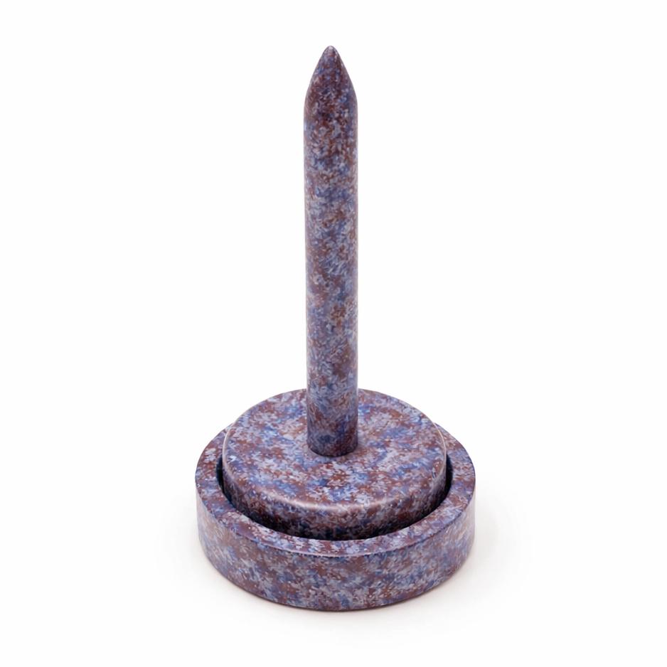 Das Oberteil ist mit dem Unterteil durch ein Metallkugellager  verbunden und dadurch leicht drehbar. Gummifüßchen sorgen für den sicheren Stand und schonen die Tischfläche.